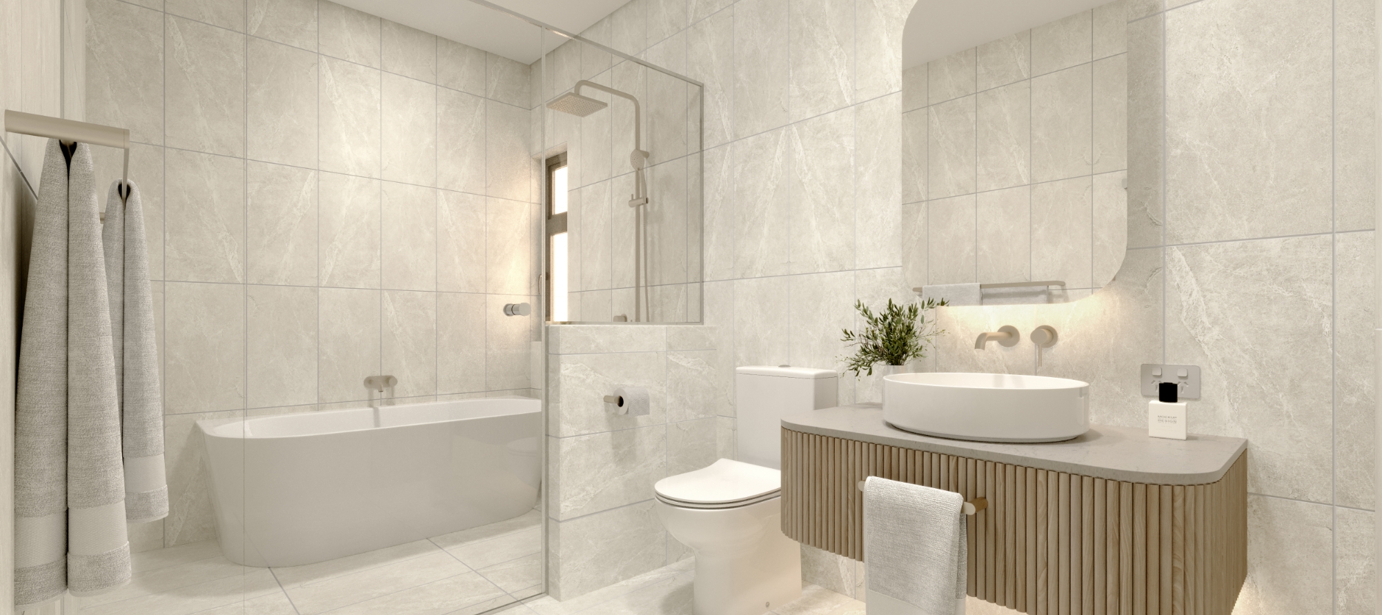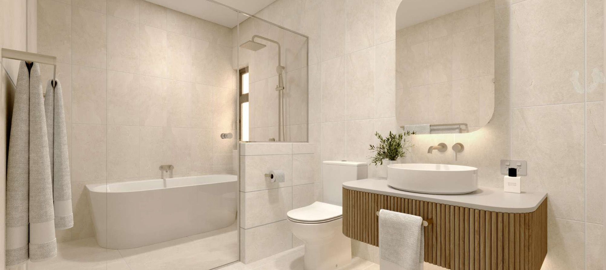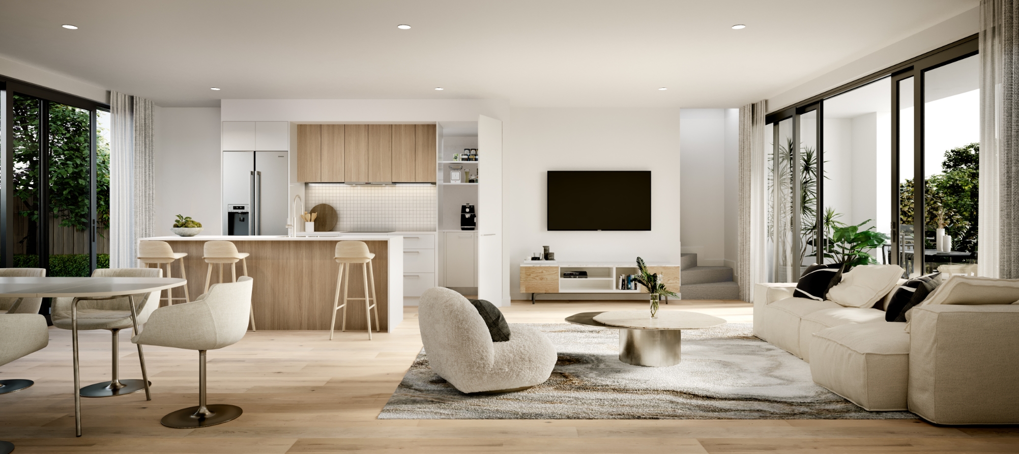 Immerse in a light and airy ambience. Complemented by natural textures where limestone reminiscent tiles and oak flooring encapsulate the space to create a light filled haven.