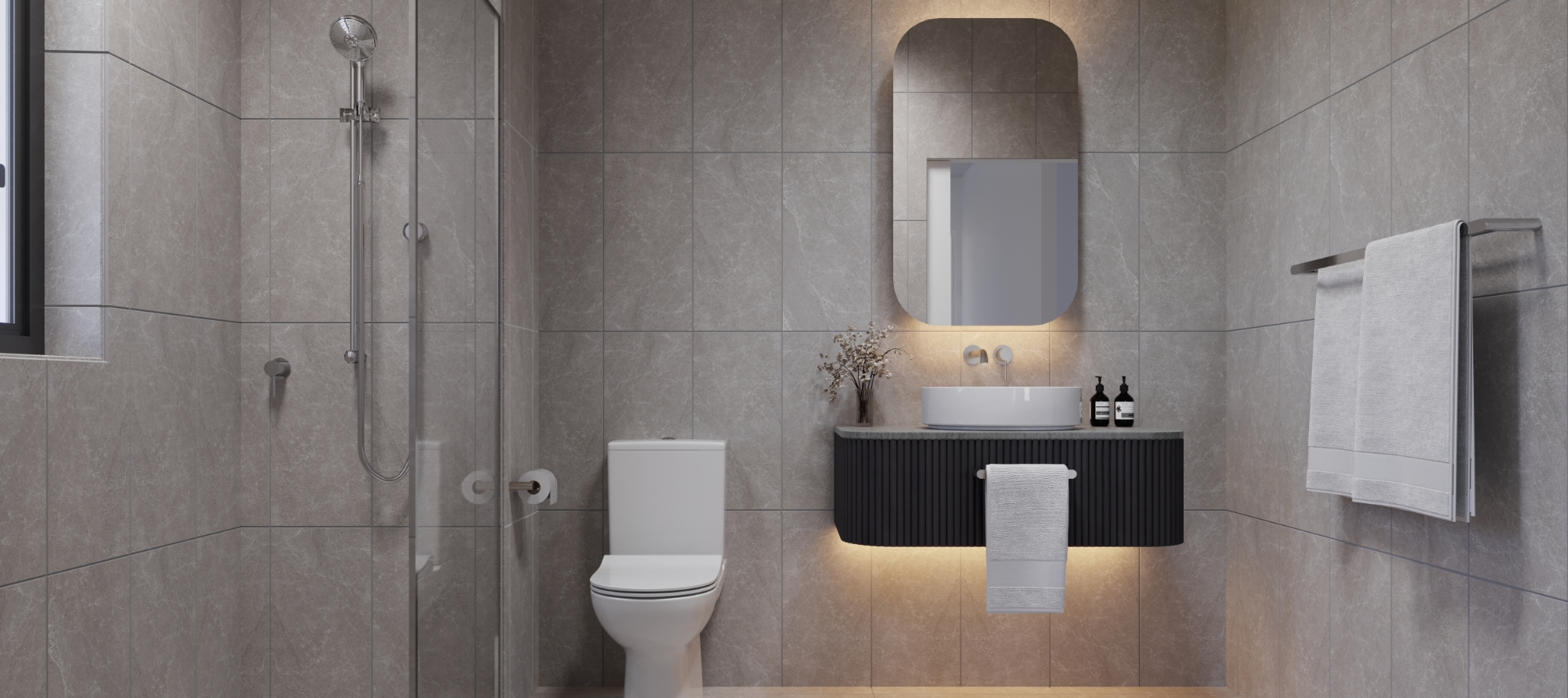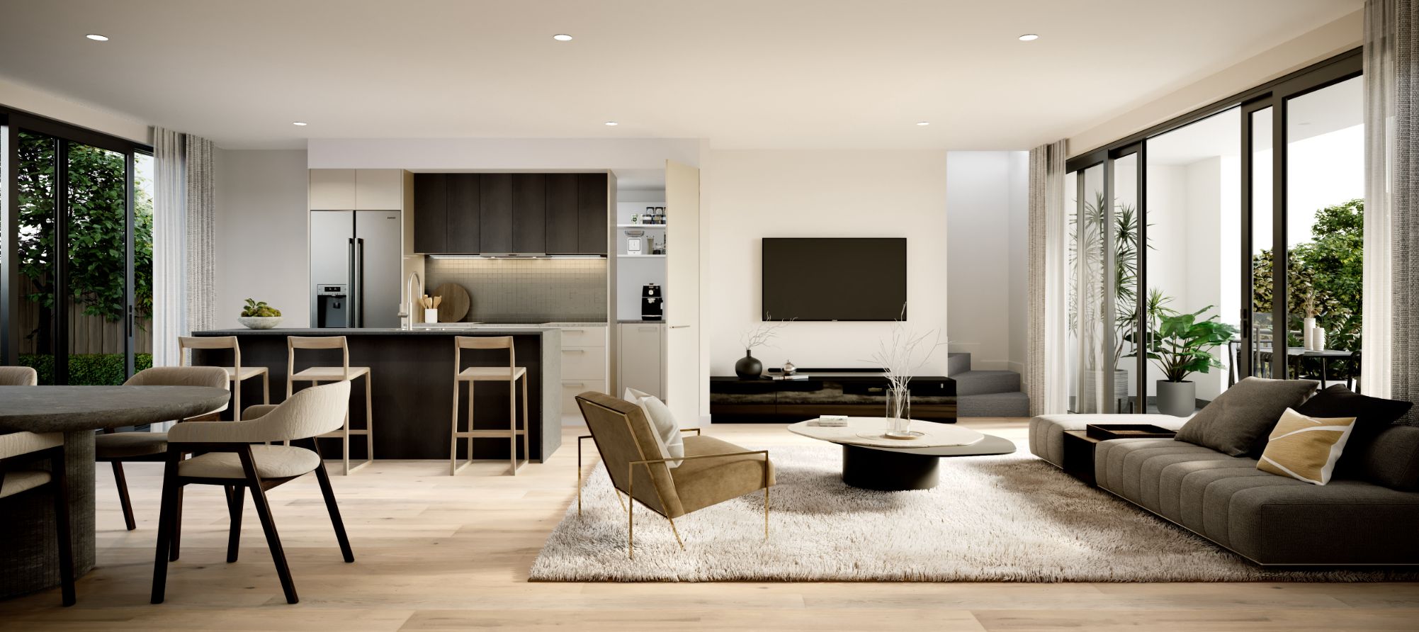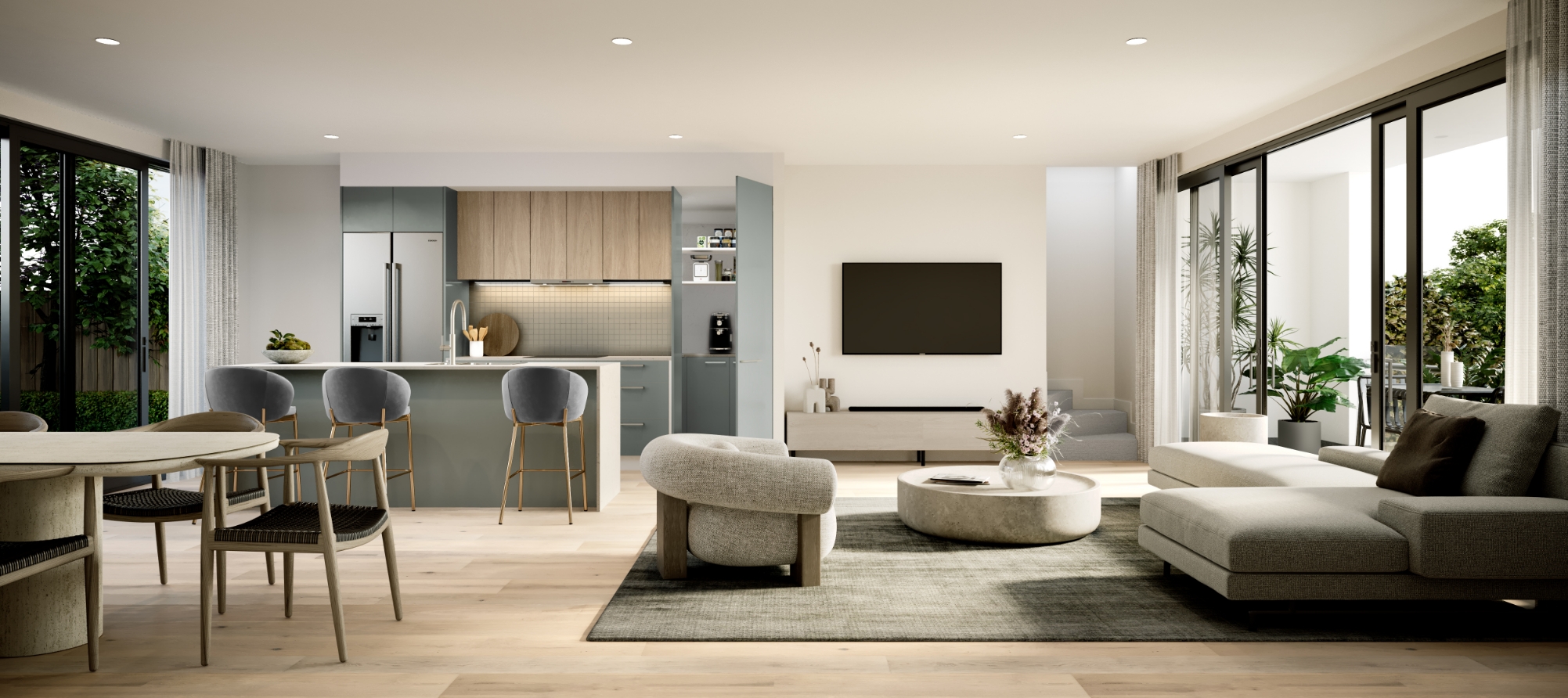 Immerse in a light and airy ambience. Complemented by natural textures where limestone reminiscent tiles and oak flooring encapsulate the space to create a light filled haven.